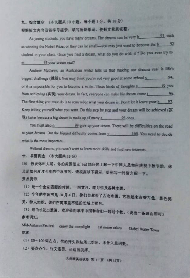 2018屆天津河西九年級上英語期中試題(圖片版)(11)