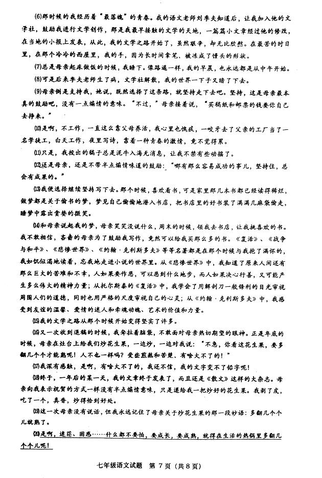 2018山東青島市南聯考七年級下語文期末試題(圖片版)(7)