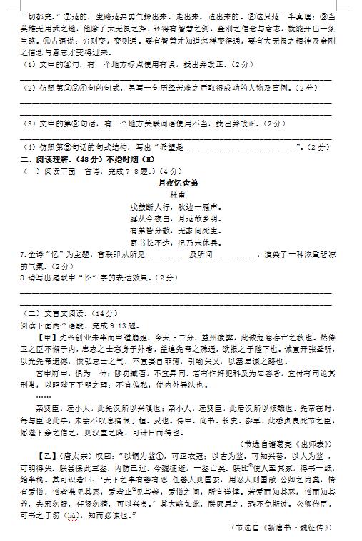 2019-2020山東臨沂經濟技術開發區九年級上語文期末試題(圖片版)(2)