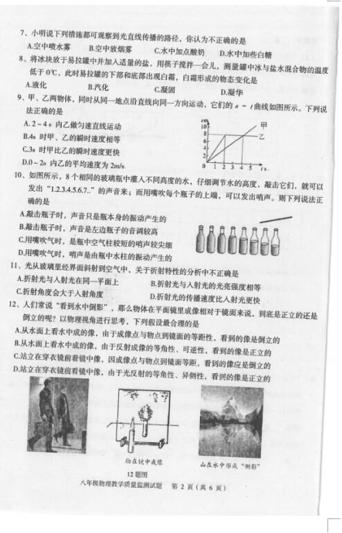 2019-2020湖北利川市八年級上期末物理試題(圖片版)(2)