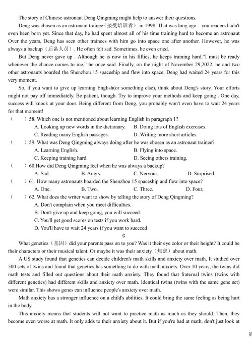 2024年江西吉安市第二中學九年級英語月考真題(圖片版)(5)
